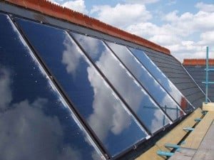 There are many ways that people can make a contribution to the well being of the world and the Carmelites have chosen their way. The common thread that runs through all people who are committed to improving the environment is the understanding that consumers consume too much and we must work together to reduce consumption of every material resource. We installed six of our KSA Sea Sand Resistant Solar Water Heating panels linked together on a slate south facing roof. As you can see, the colour of our panels against the slate blend well together and the whole picture is nicely framed by the red roof ridge tiles., as you can see from the pictures. The small square structures below the panels are Velux style roof windows. The Nuns have a very beautiful building and I do not think that our solar water heating panels have damaged its architectural integrity. They have made a statement that sustainable solutions can be integrated into many types of buildings. Of course no thermal solar technology can provide a 100% solution in this country and so it was important to back up the solar water heating with a fossil fuel powered water heating system. Using a modulating condensing boiler that operates at more than 95% efficiency provides the best solution.